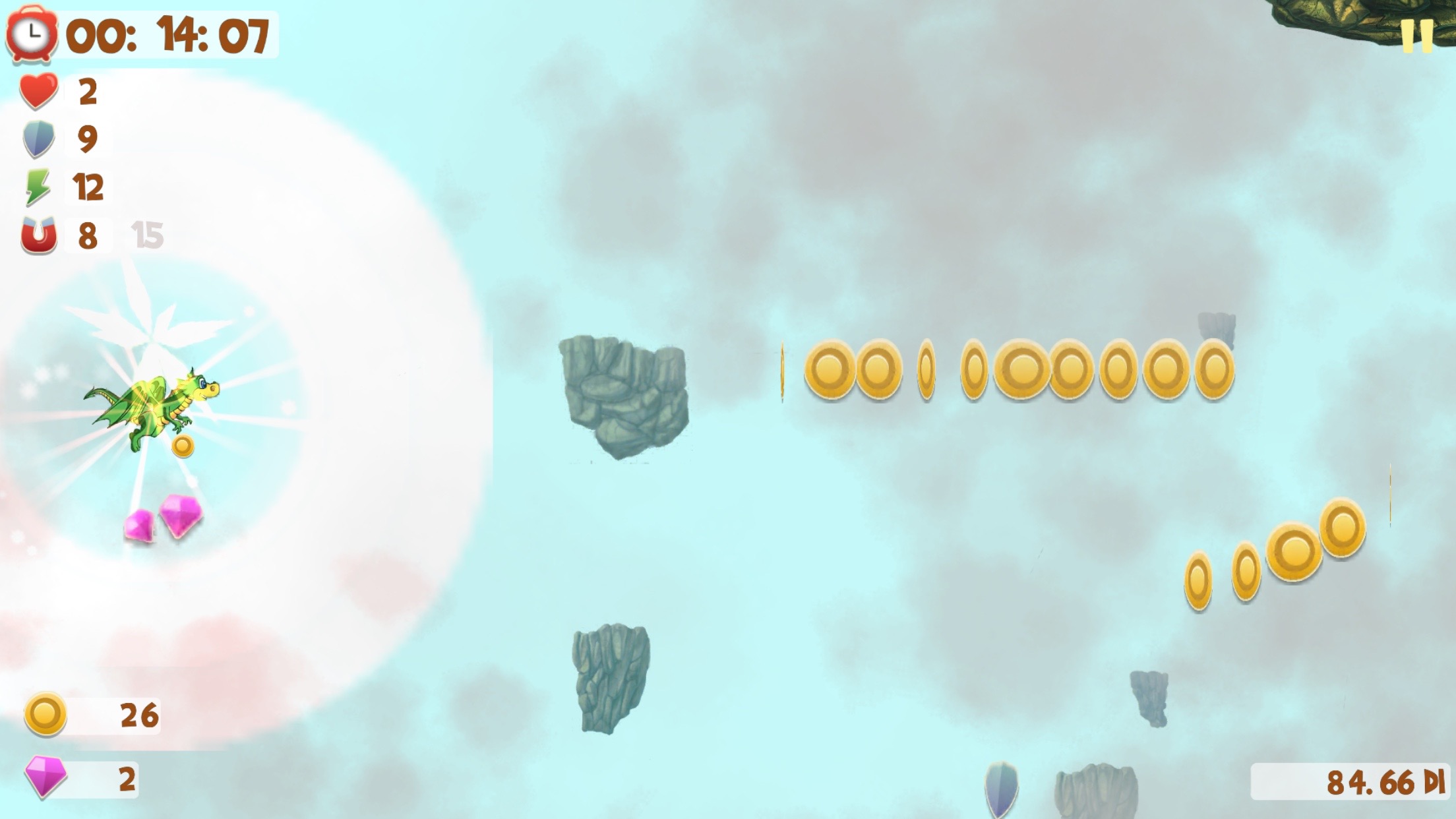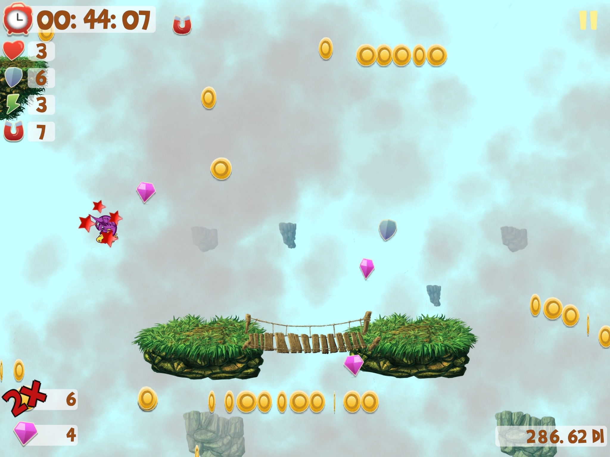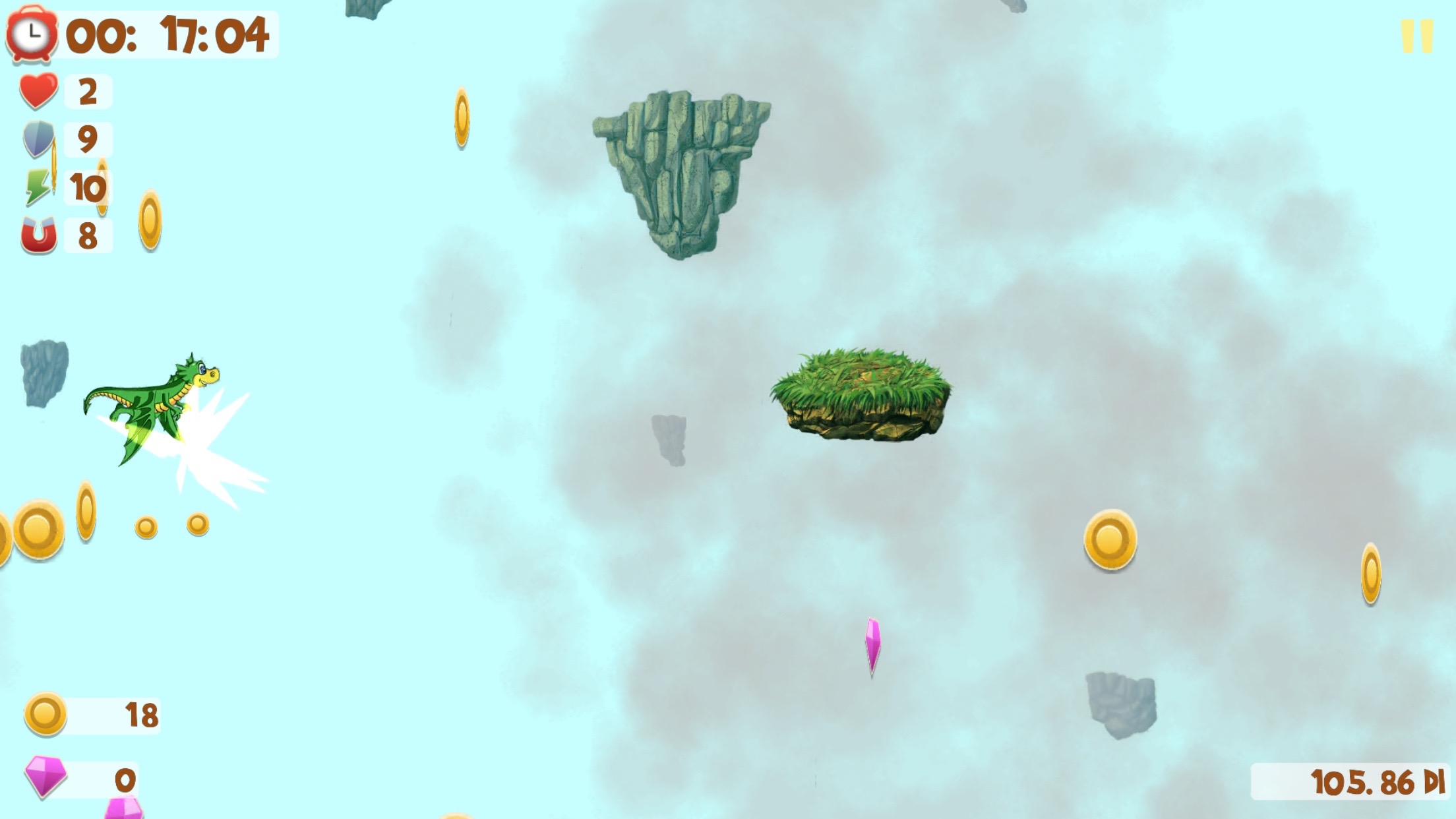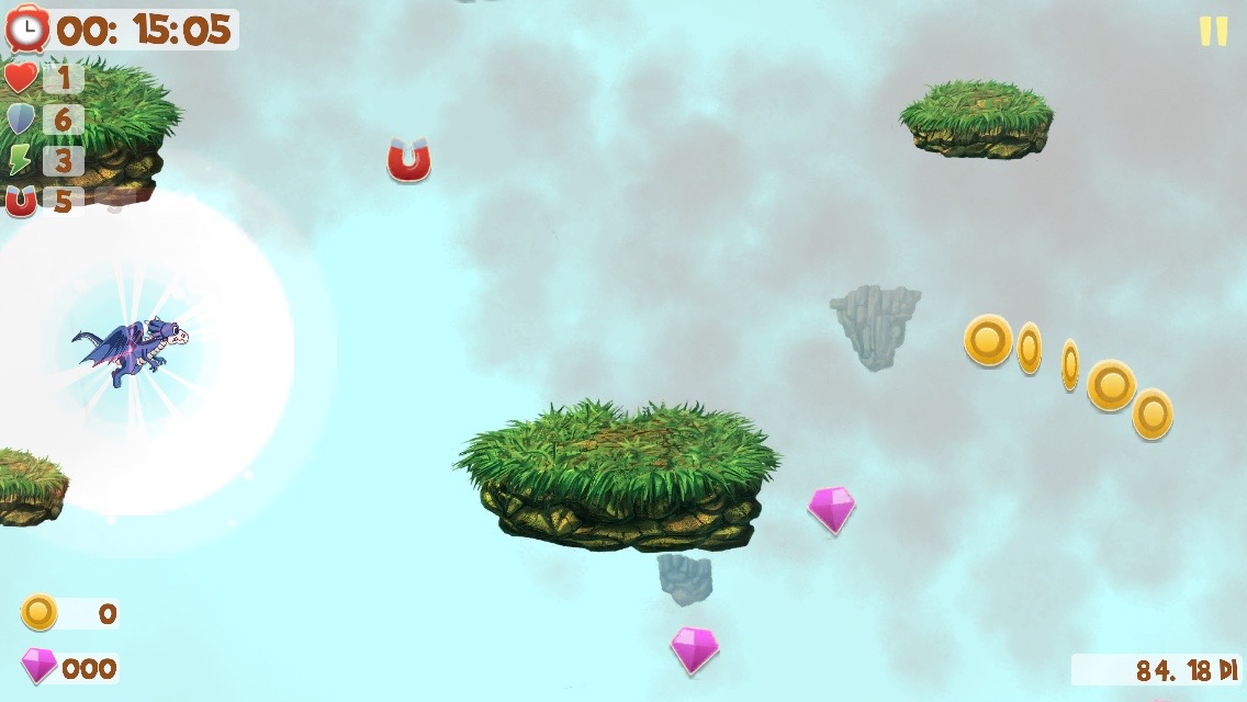 Do you like cute, baby dragons? Do you like to keep cute, baby dragons from slamming into floating islands? Of course you do! In Dodging Dragons you help one of four baby dragons fly over and under floating islands all the while collecting gold coins and rubies. Use different boosts to help your dragon fly further, collect more, and stay safe.