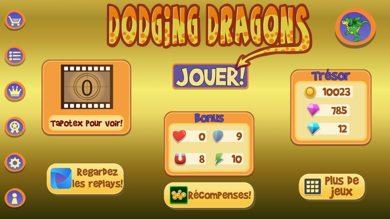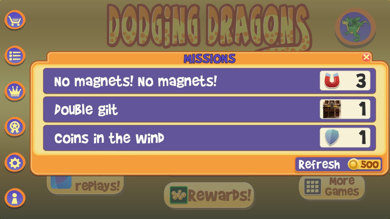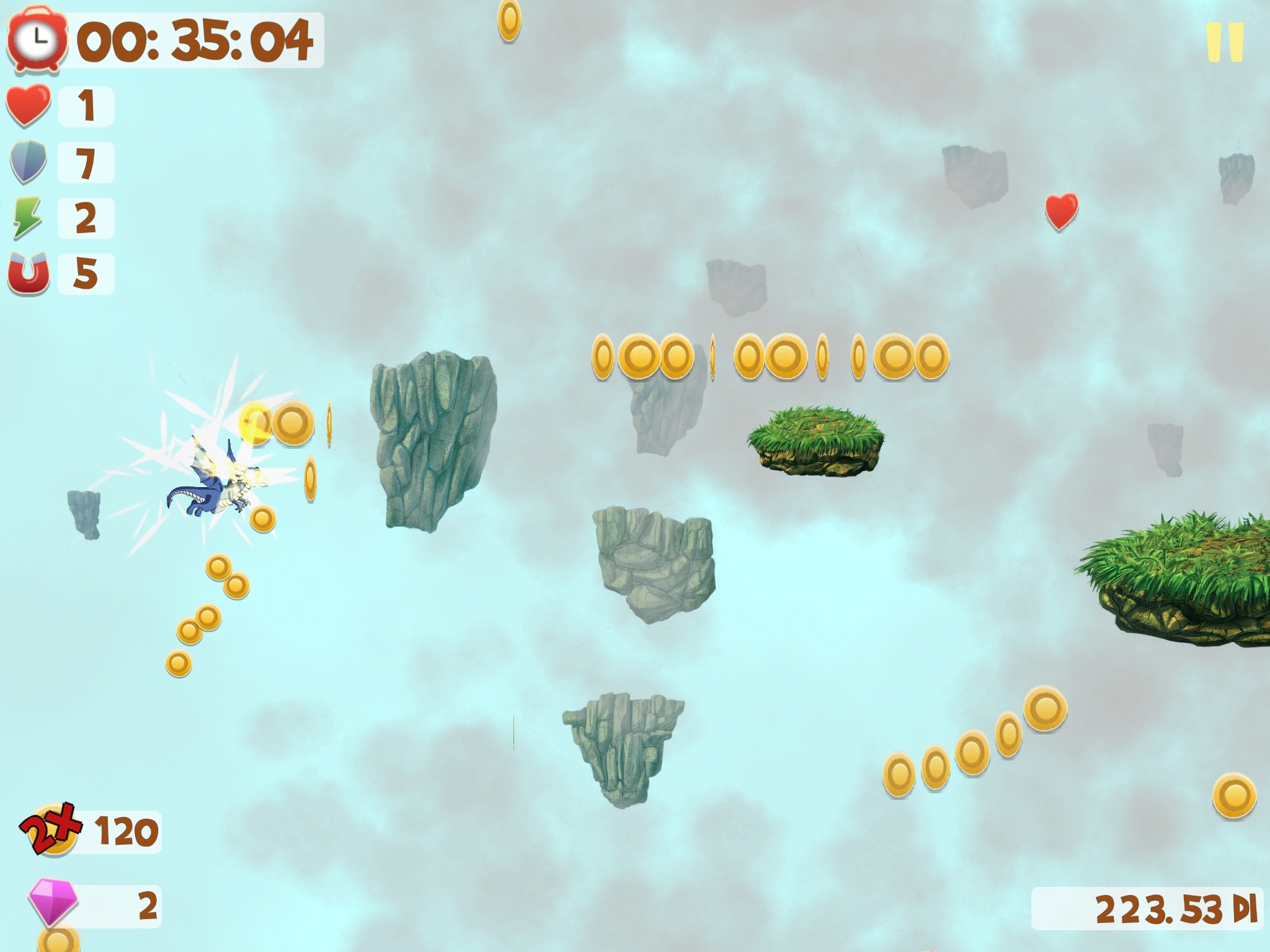 Do you like cute, baby dragons? Do you like to keep cute, baby dragons from slamming into floating islands? Of course you do! In Dodging Dragons you help one of four baby dragons fly over and under floating islands all the while collecting gold coins and rubies. Use different boosts to help your dragon fly further, collect more, and stay safe.